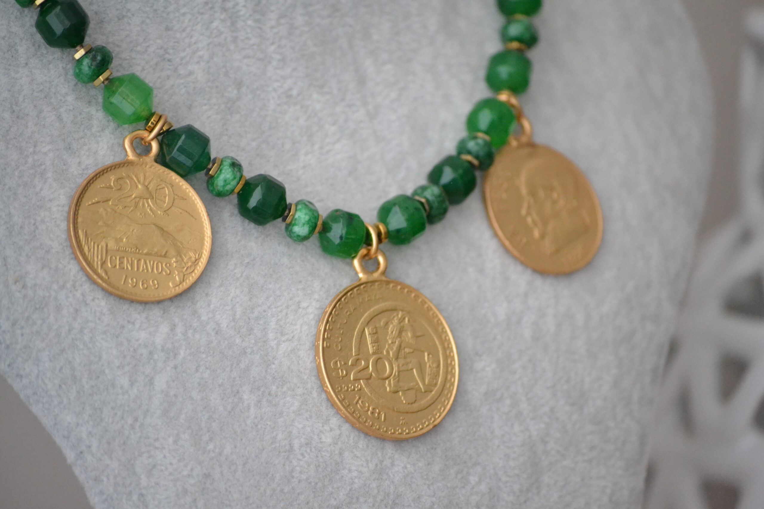 Cadena Ágata Verde & Monedas