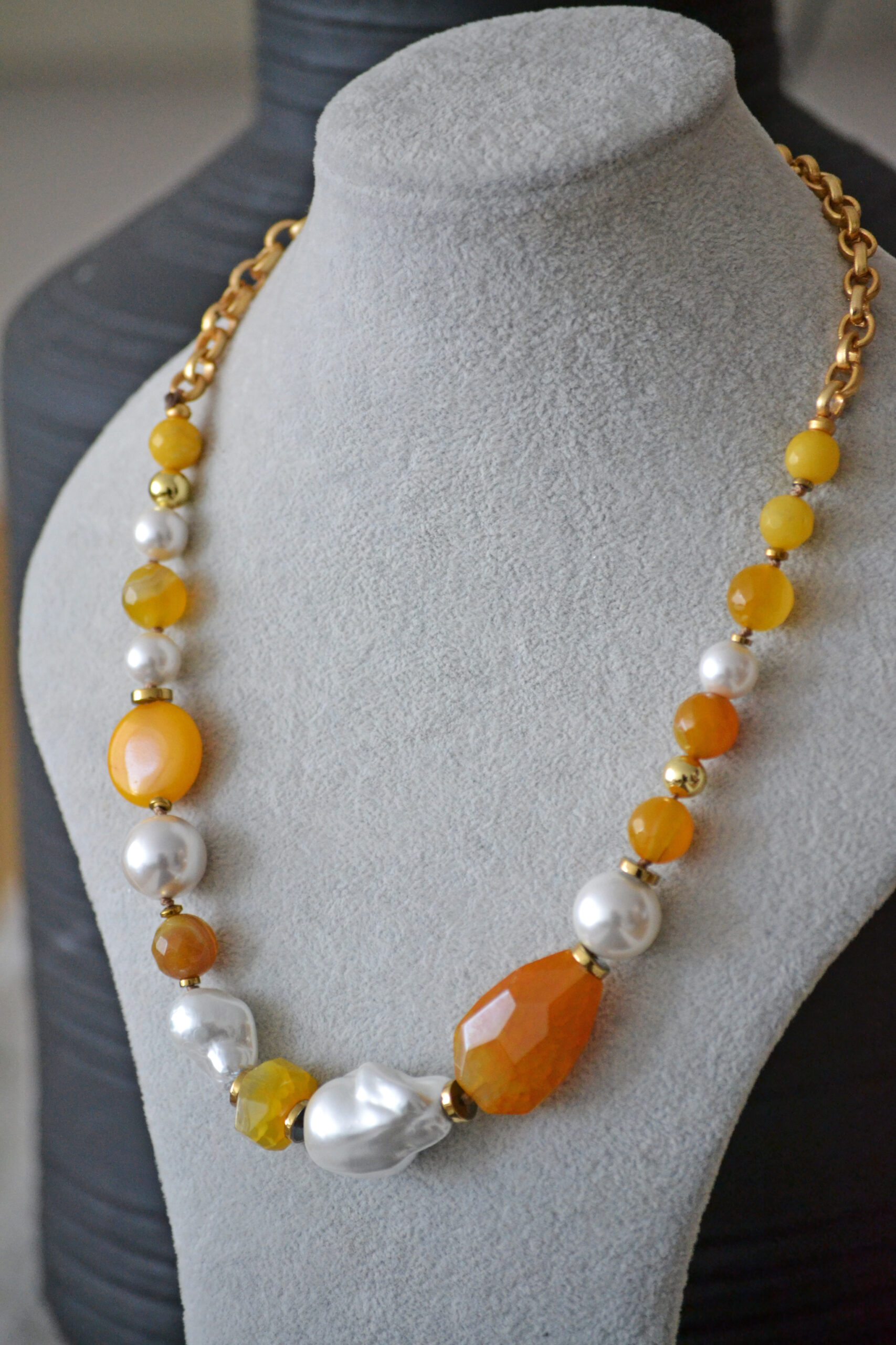 Collar Ágata Amarilla & Perla Jumbo