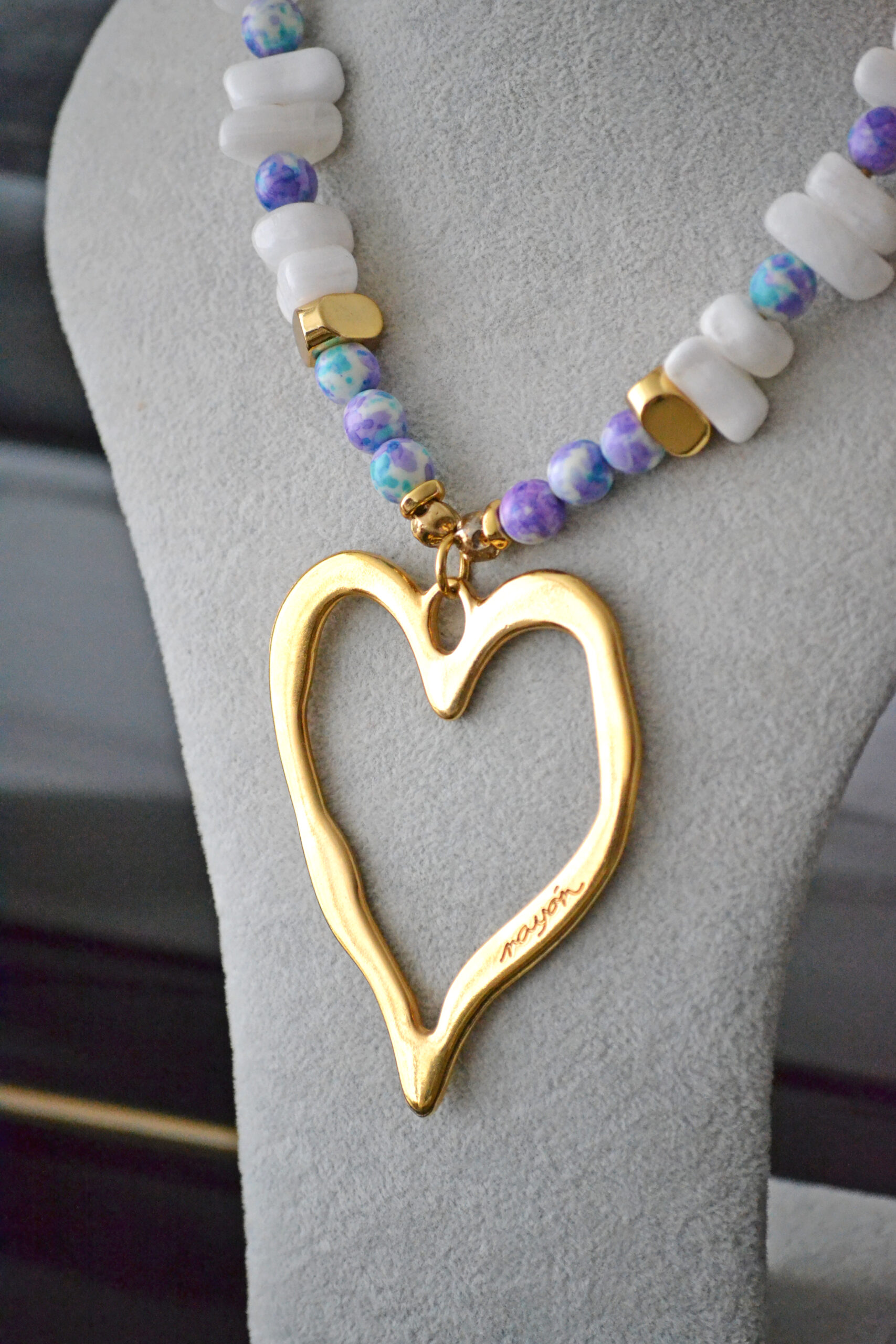 Collar Ónix Blanco & Corazón
